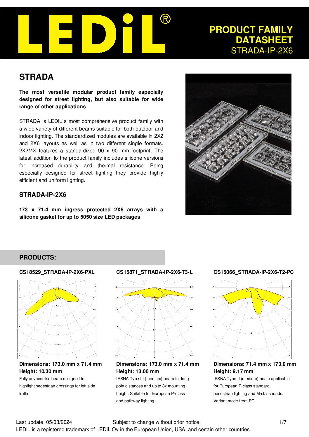 Matrices 2X6 de 173 x 71,4 mm con protección contra la entrada y junta de silicona para paquetes LED de hasta tamaño 5050